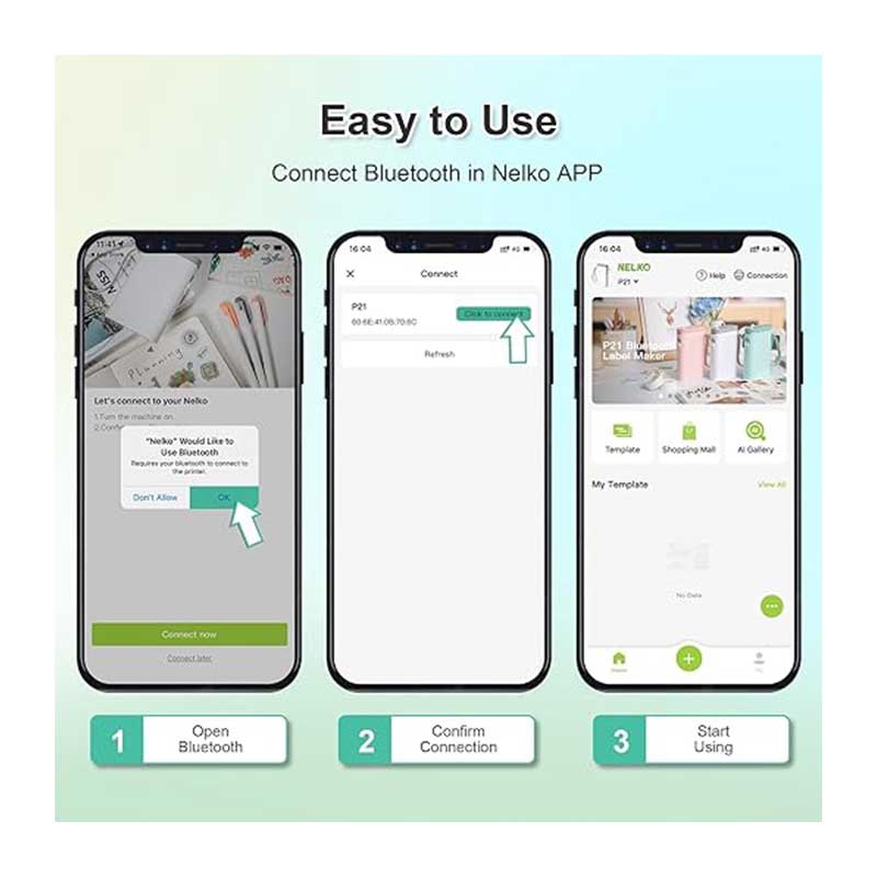 استفاده آسان: چاپگر برچسب NELKO، با اتصال بلوتوث به گوشی‌های هوشمند iOS و Android سازگار است.