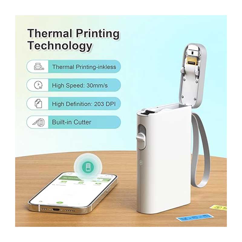چاپ با کیفیت بالا: چاپگر برچسب با فناوری حرارتی مستقیم بدون BPA. مجهز به چیپ‌های پرسرعت و وضوح 203 DPI است که می‌توانید از چاپ با وضوح بالا بدون نیاز به جوهر یا تونر لذت ببرید. این چاپگر برچسب دارای باتری قابل شارژ با دوام است که می‌تواند برای مدت طولانی کار کند. این چاپگر برچسب، چاپگر سیاه و سفید است که فقط متن سیاه چاپ می‌کند. ما می‌توانیم طراحی‌های برچسب رنگی ایجاد کنیم و برای چاپ نیاز به نوارهای برچسب با الگوهای رنگی داریم. (توجه: آداپتور شارژر شامل نمی‌شود)