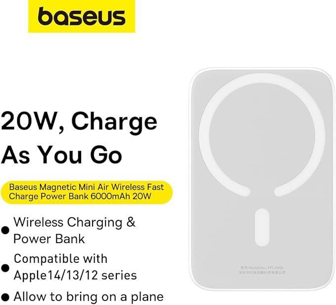 شارژر قابل حمل مغناطیسی بی سیم MagSafe Baseus 6K mAh با کابل Type-C شارژ سریع 20W