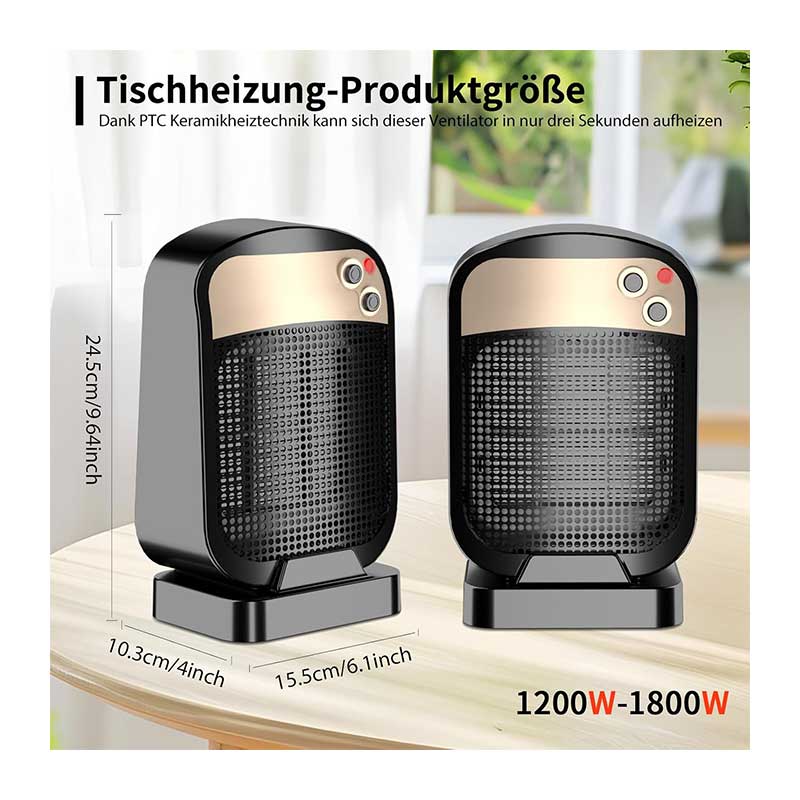 هیتر فن کوچک و جمعوجور: با ابعاد 24.5 × 15.5 × 10.3 سانتیمتر، این هیتر کوچک فضای بسیار کمی اشغال میکند و تقریباً در هر اتاقی جای میگیرد. اندازه جمعوجور امکان قرارگیری منعطف بخاری سرامیکی را روی میز، کف یا حتی حمام فراهم میکند. گرچه کوچک است، اما عملکرد گرمایشی فوقالعادهای ارائه میدهد.
