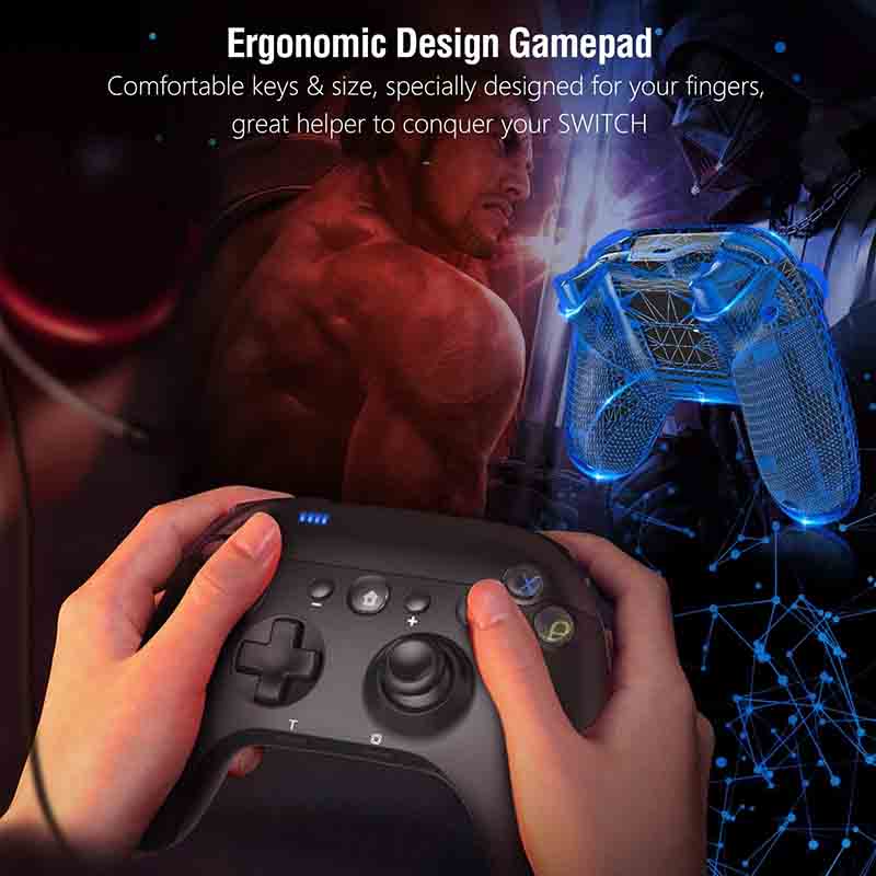 ✅【نبرد طولانی و بهروز】 این دسته بیسیم است و به راحتی با کنسول سوییچ جفت میشود. شارژ کامل این دسته حرفهای تنها ۲ ساعت طول میکشد و ۸ ساعت بازی مداوم را پشتیبانی میکند.