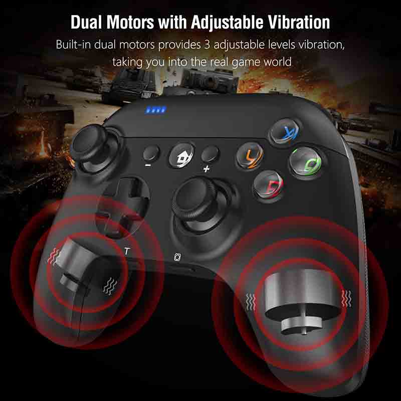 ✅【قابل تنظیم توربو و عملکرد شوک دوگانه】 این دسته بیسیم از ۳ سرعت توربو پشتیبانی میکند: ۵ شلیک در ثانیه، ۱۲ شلیک در ثانیه، ۲۰ شلیک در ثانیه؛ ۳ سطح مختلف شوک دوگانه: قوی، متوسط و ضعیف که باعث میشود تجربه بازی نهایی خود را احساس کنید.